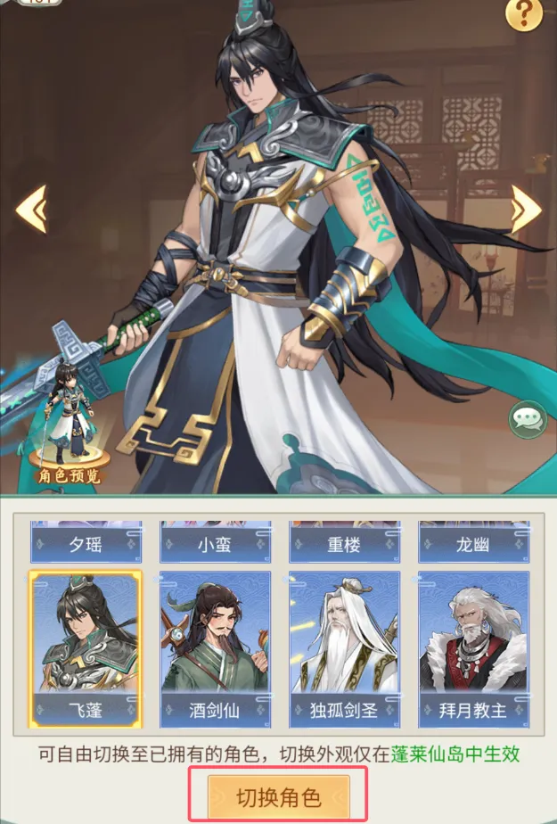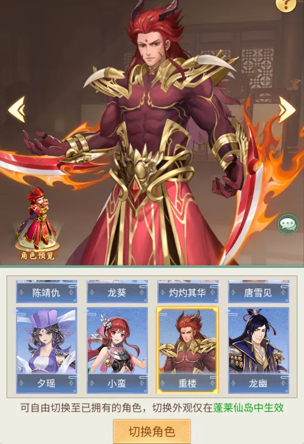 3、切换角色,重楼或者飞蓬,如果你选重楼,那对手就选飞蓬。